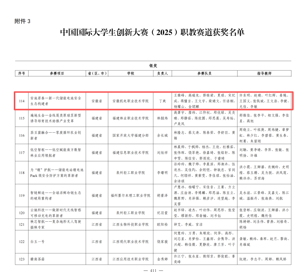 近日,中国国际大学生创新大赛(2025)获奖名单正式公布,我校“安池若泰”项目凭借扎实的创新成果、鲜明的实践价值和出色的现场展示,成功斩获国赛银奖,学校也实现了连续两年进入国赛现场赛并获奖的历史性突破。这一殊荣,既是对项目团队创新能力与实干精神的高度认可,也充分彰显了我校在创新人才培养领域的扎实成效与丰硕成果。